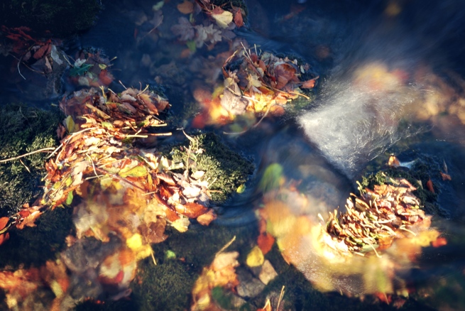 Leaves in water Published 2 December, 2012 at 655 × 438 in The End of Autumn in Cumbria: Or, How I Am Not A Country Boy The way autumn leaves gather together in rushing water.