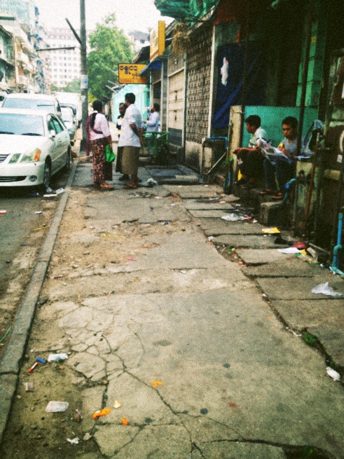 As we got further into the centre of Yangon, the usual SE Asia scenes took on a different, older cast, as they were all conducted in front of run down buildings that looked like they hadn’t seen any maintenance since the British left in 1948. I’ve seen plenty in Central America that fits the term “faded colonial splendour”, but this was the first time in Asia.