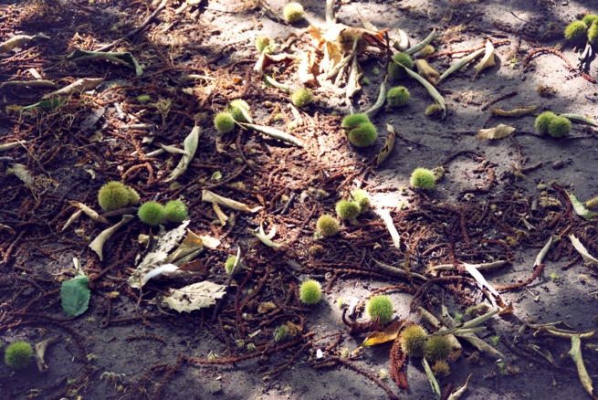 Sweet Chestnuts. In a few weeks’ time, when they’re at their best, Greenwich Park will be full of people sweeping these up into carrier bags. Don’t worry, though, you’ll see them again – when you pay £5 for a bag of them roasted, at a Christmas market.