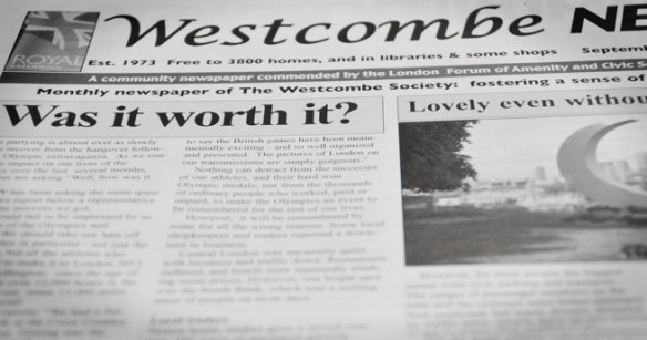 Even the Westcombe News (“Free to 3800 homes, and in libraries & some shops”) my local community newspaper and the home of rampant nimbyism, picked up the prevailing wind and realised that to come out openly against the Games would have resulted in their offices (if they had any) being stormed and the editorial staff (volunteers) being lynched in Greenwich Park. Still, as headlines go about the greatest sporting event that this nation has ever seen, “Was it worth it?” is hardly the unambiguous headline of unwavering support one might have expected.